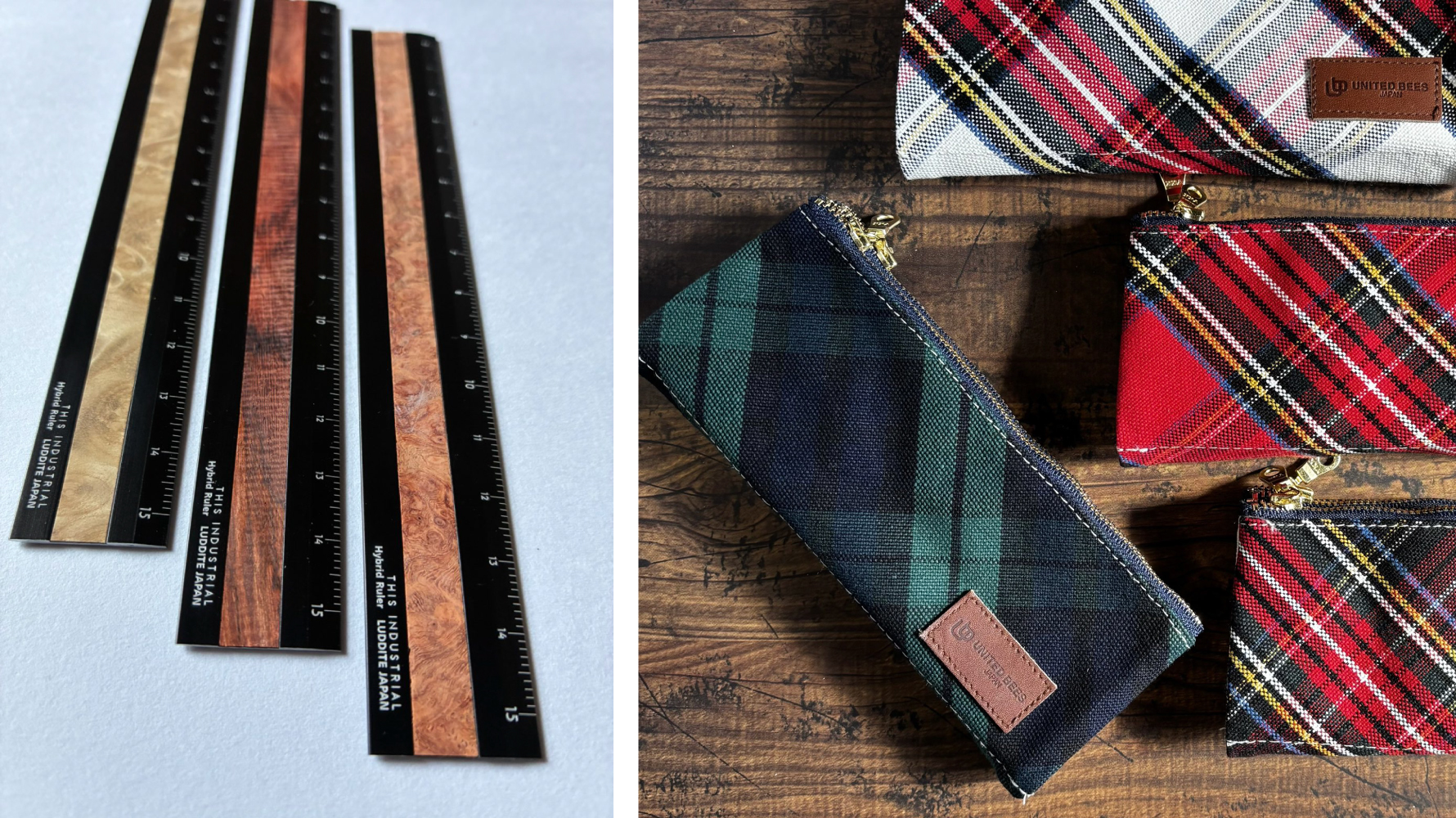 その他、定番のシャーペンや革製品、定規やスリーブが並びます。