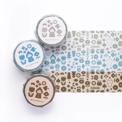 山形県米沢市在住の在住の人気イラストレーター・mizutamaさんが、同地のファブリックメーカー・鷹山堂さんの自社ブランド「米織小紋」とコラボした際のイラスト(hana柄)を、マスキングテープにしました。