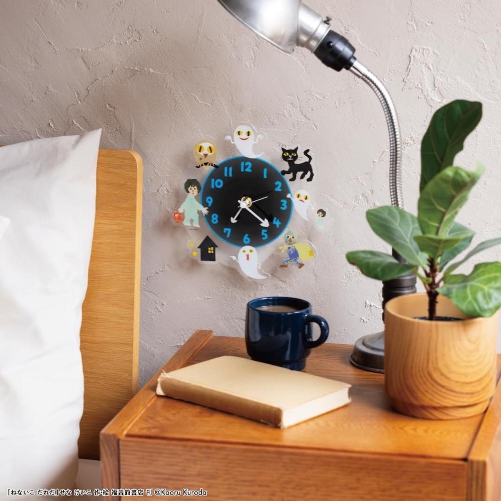 50年以上愛されている、せなけいこ先生のロングセラー絵本『ねないこ だれだ』に登場するおばけたちが集まった本誌限定デザインのアクリル時計が登場。