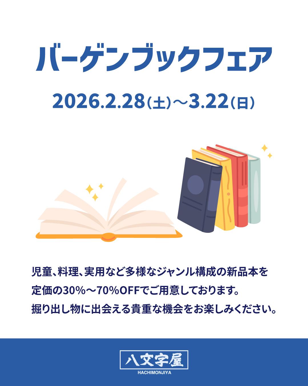 さらに、同日2月28日 (土) から3月22日 (日) までは、同じく泉店にてバーゲンブックフェアも開催。