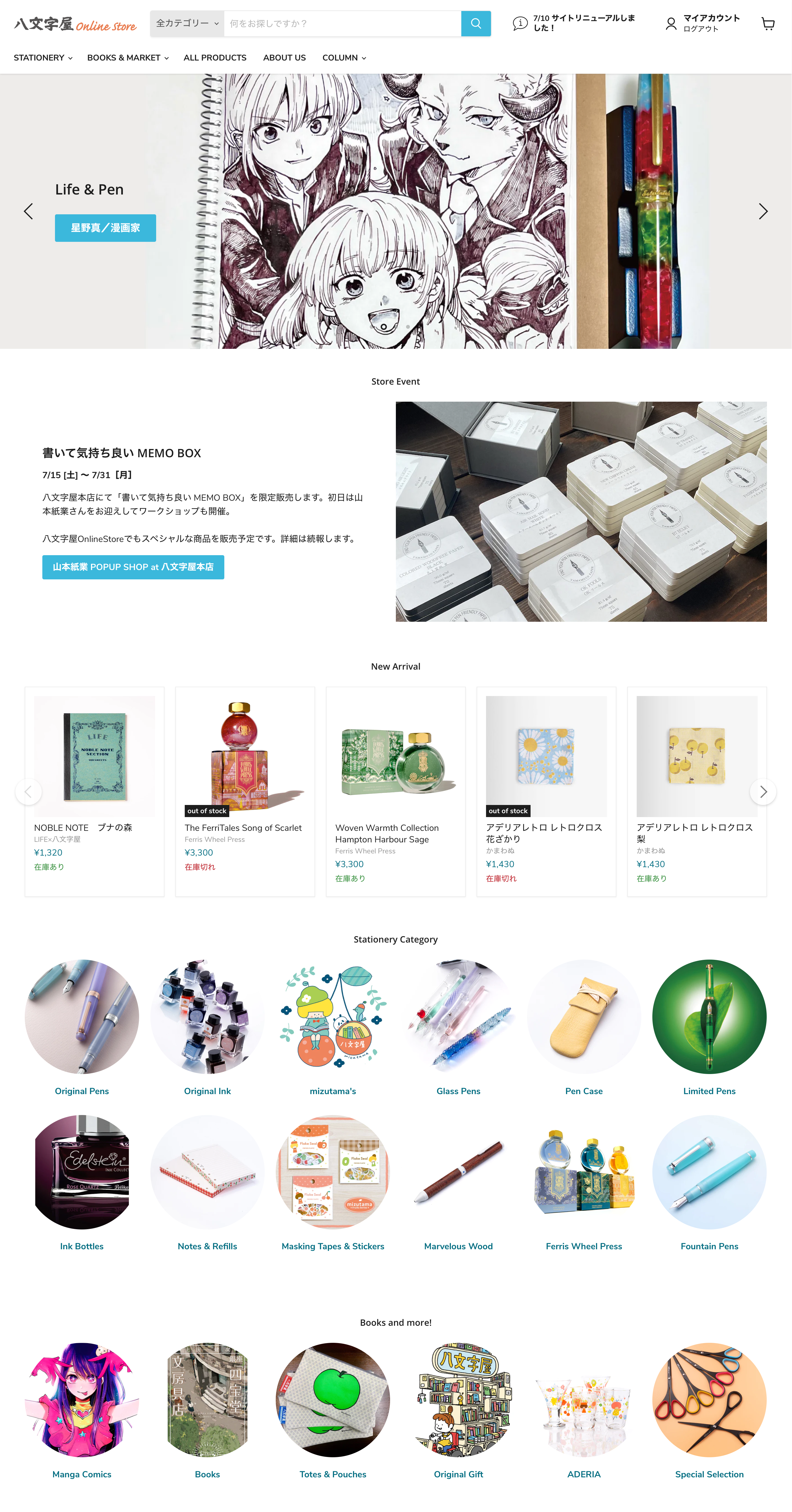 オリジナル文具を中心に販売している、八文字屋の通販サイト(八文字屋OnlineStore)をリニューアルしました。
