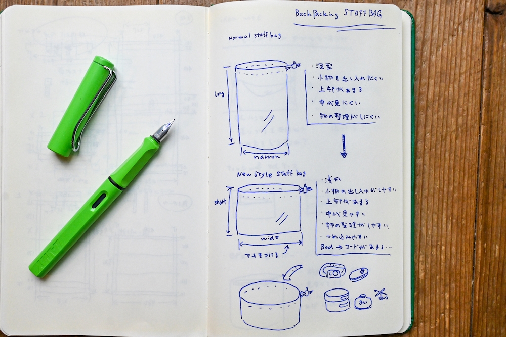 商品開発であったり、企画を考えることが多いので、アイデアノートは常に持っています。でも本当は書くのが面倒くさい(笑)。その気分を上げるために万年筆を使っています。書く行為自体を楽しくしたかったんですね。常に使うペンとして、万年筆がいつも作業机にコロンと転がっています。