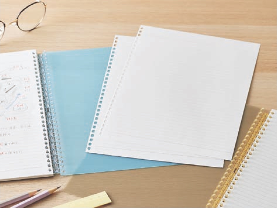 1冊だけを持ち運び、あとで別のノートに移して分類・整理する、異なるサイズのリーフを組み合わせて収容するなど、様々な用途で活用できます。