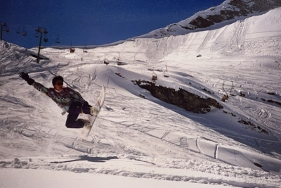 当時はスノーボードが流行る前だったので、道具も第一世代。今はメジャーになった「BURTON/AIR」の一号機を使っていました。ショートスキーも試作品で買って、アイスバーンでもなんでも滑っていましたよ。年間40〜50回は滑っていたから、グローブなんてワンシーズンで3、4個ダメにしてましたね(笑)。冬のシーズンが終わると、オートバイです。1000ccのバイクでスイスからフランクフルト、バルセロナ、いろんなところまでツーリングに出かけました。