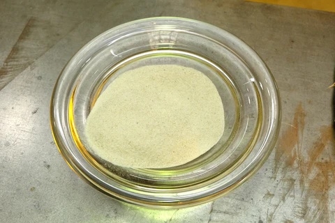 りんごのインクポットの原材料は、山形の霊峰「月山」と、遠くアフリカの「サハラ砂漠」の砂の2種類(2色)を選んだ。