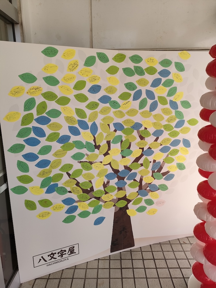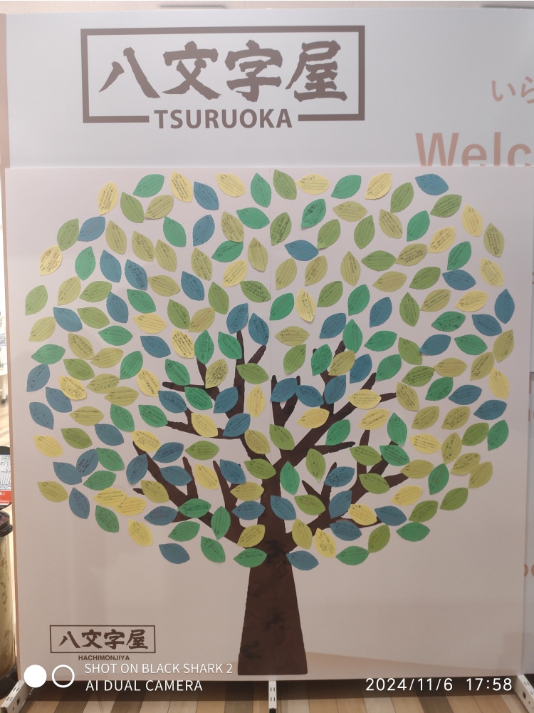 お知らせ 【八文字屋文化祭 終了】 ご参加ありがとうございました! 2024.11.07 八文字屋ONLINE たくさんのツリーができました。 3日間に渡って開催されました「八文字屋 文化祭」はご好評のうち終了いたしました。 イベントの様子を撮影した写真を掲載しておりますので、ぜひご覧ください。 ご参加いただいた皆様、ありがとうございました。 本店 北店 TENDO店 鶴岡店 みずほ店 長井店 丸井店 セルバ店 各店イベントの様子