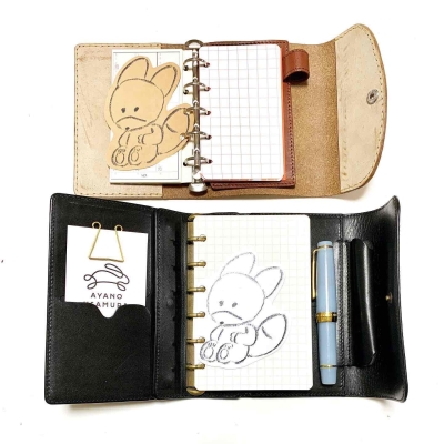 旅行中に漫画のネタを書き留めることもあるので、そのときはシステム手帳に収まるサイズの万年筆を使います。サイズがマイクロ5のシステム手帳に合うのは、「セーラー/プロフェッショナルギアミニ」か「カヴェコ/スカイラインスポーツ」のミニタイプ。フタがねじ式で、液漏れの心配もありません。