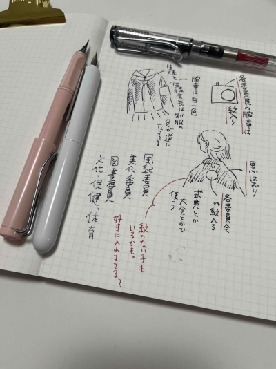 万年筆で絵も描きますが、字幅が広くなければ描きにくいことはないですね。インクはブルーブラックかグレー。グレーは薄い色を選んで、絵の下描き用に使っています。